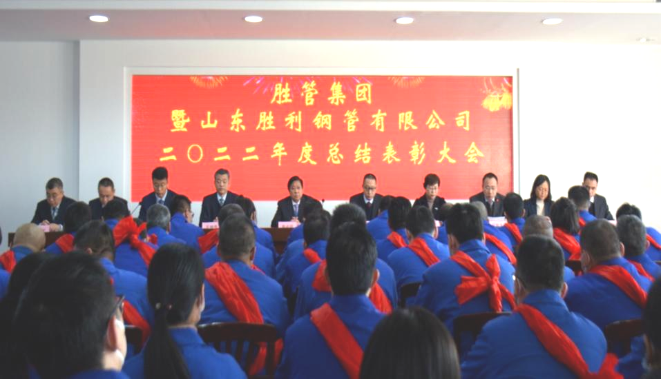 ?? 2023年1月7日上午,勝管集團(tuán)暨山東勝利鋼管有限公司2022年度總結(jié)表彰大會(huì)在集團(tuán)四樓會(huì)議室隆重召開。勝管集團(tuán)經(jīng)理層、山東勝利鋼管有限公司中層以上管理人員、員工代表及受表彰人員參加了本次會(huì)議。
